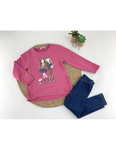 Ideal para la vuelta al cole este conjunto de leggings efecto vaquero y camiseta manga larga ligeramente afelpada.